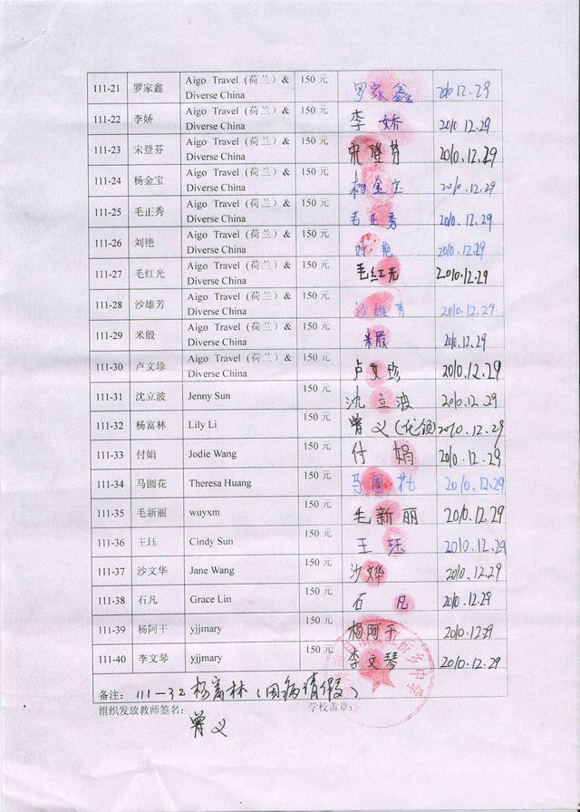 (备注:“Tiger”组织捐助20名,但是后因某些原因取消了原计划资助20名学生,改为10名学生。因此111-21号至111-30号学生转由星河欲转捐助,谢谢。)