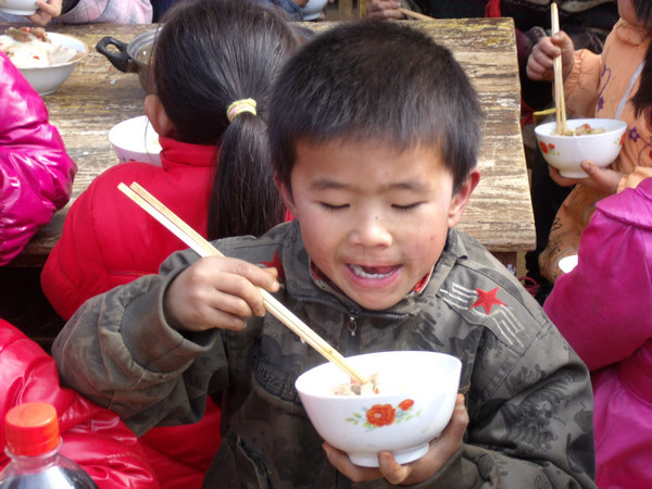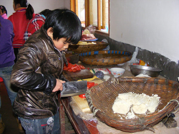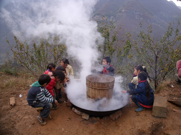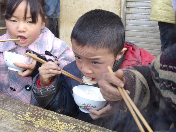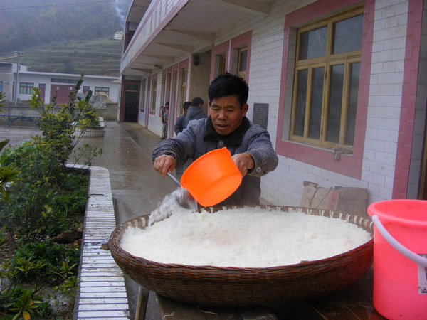 村里的一些老人也来看一看这“从来没有过的好事”,下图这位高龄老者说:“我帮不上忙,但一定要来看一看……”