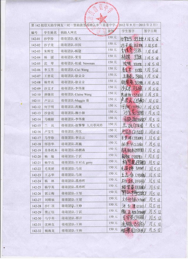 信天团捐2013年 初中65名 142批