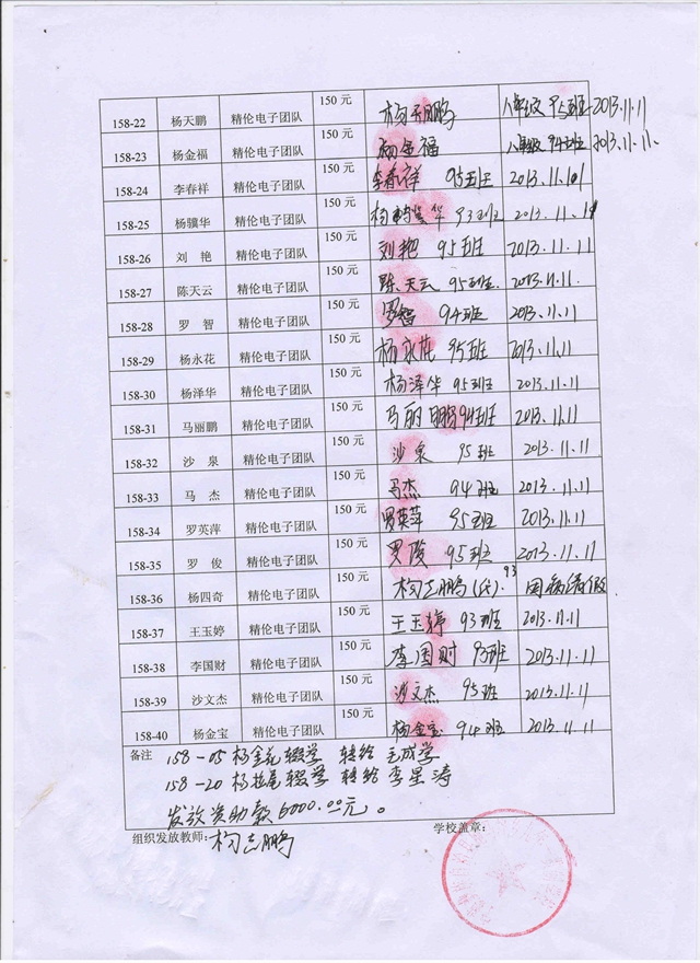 158-20杨拉尾同学,因中途辍学,资助款转给李星涛同学;
