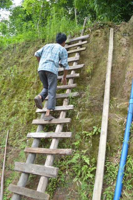 修水池的砖、沙、水泥、施工人员都从这个梯子上一点一点运上去的。