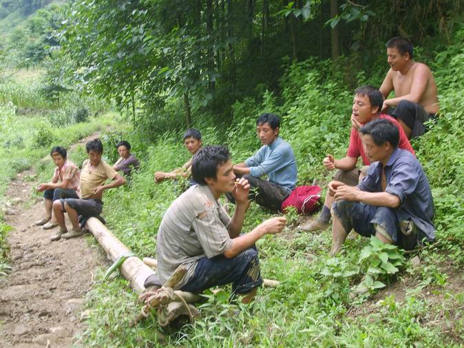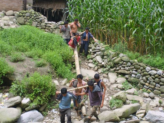 这是村民们在抬电线杆子.