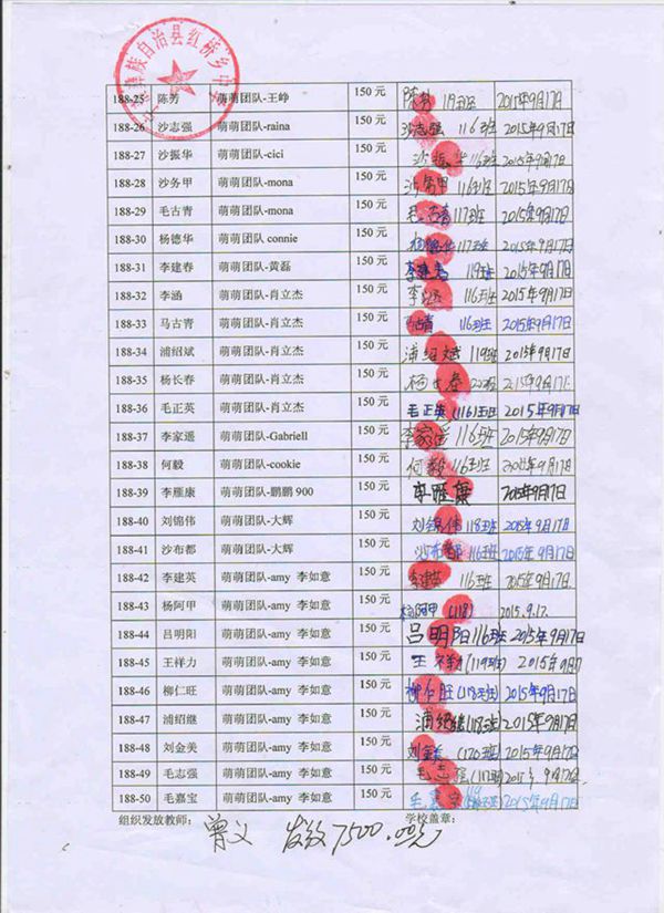 » 第188批受助学生名单(红桥中学初一50名,萌萌团捐)