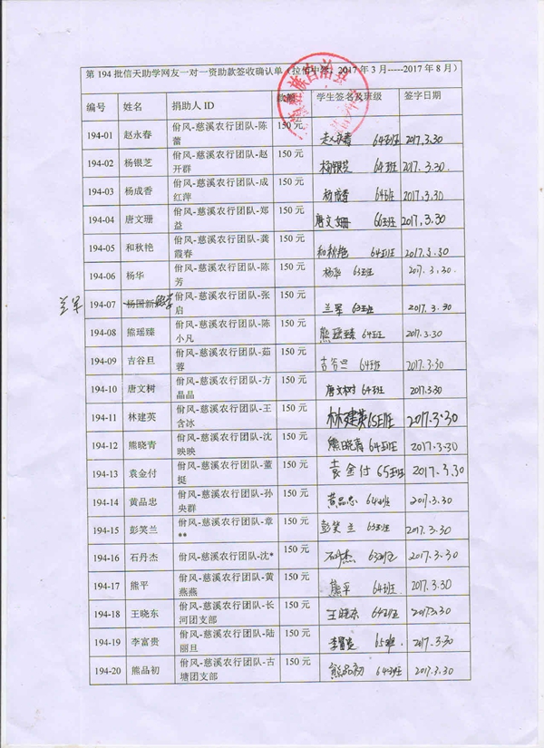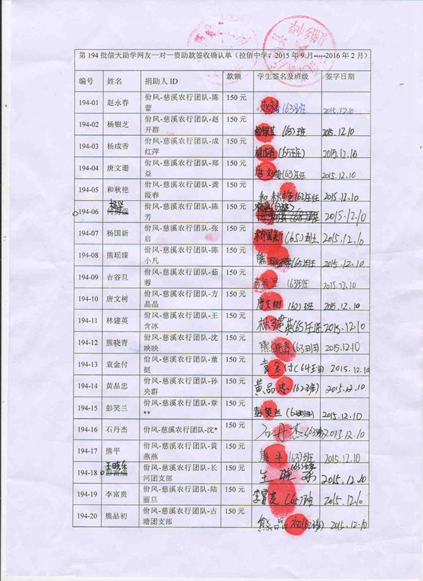 194-06何勇强,因中途辍学,资助款转给 杨华;