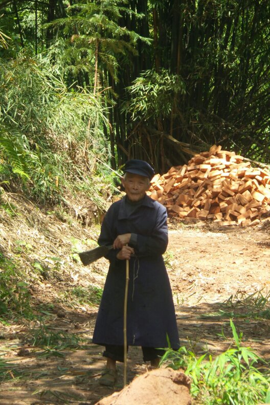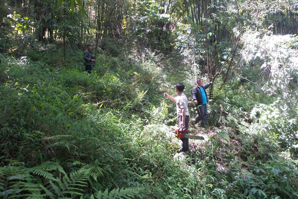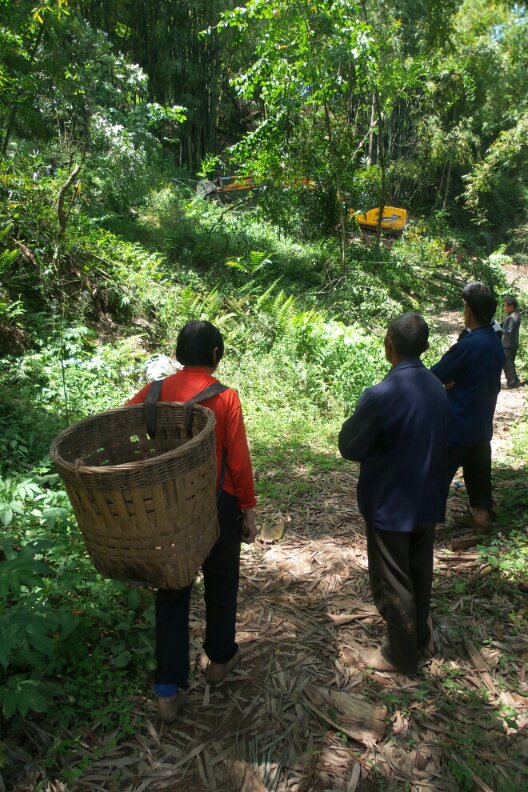 没有路,村民们背运竹子。