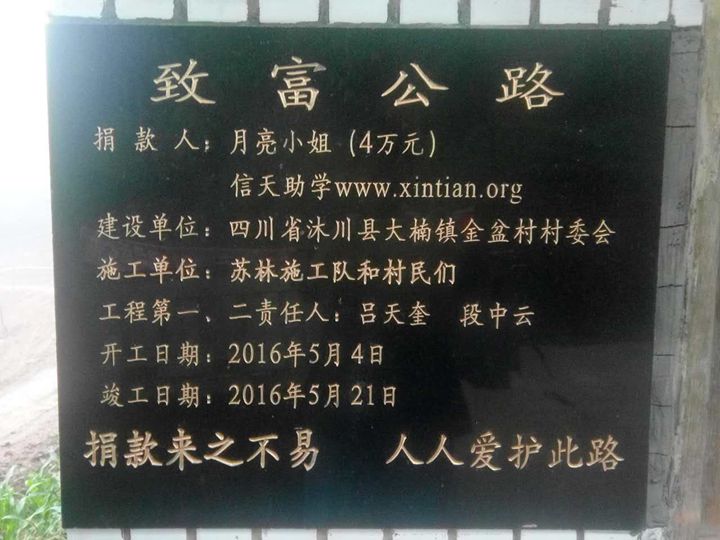 » 第80条路:四川省沐川县大楠镇金盆村致富公路(月亮小姐捐)