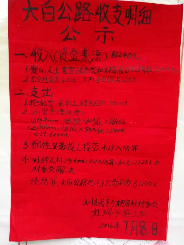 红榜公示,修路收支公开。