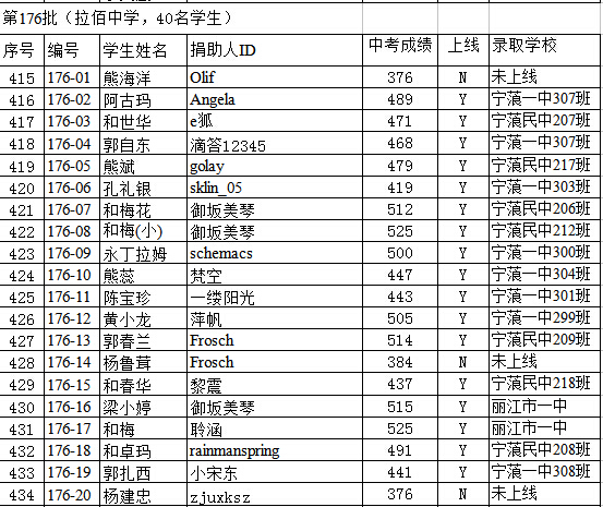编号 学生姓名 捐助人ID 中考成绩 上线 录取学校