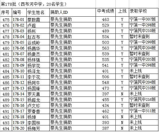 178-16 卢文珍 蔡先生捐助 434 Y 宁蒗一中302班