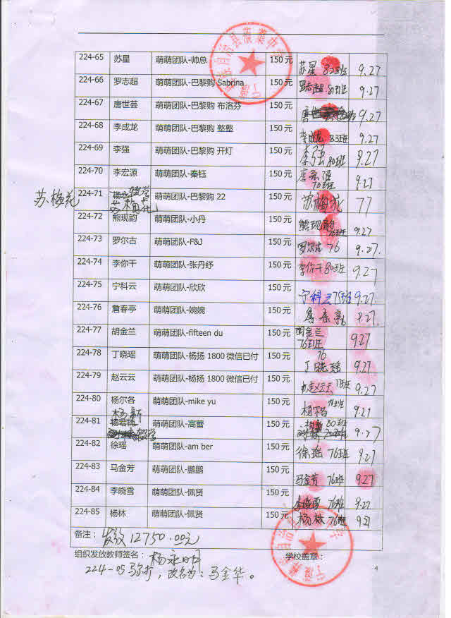 224-71杨永,因中途辍学,资助款转给 苏梅花;