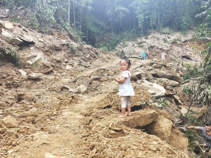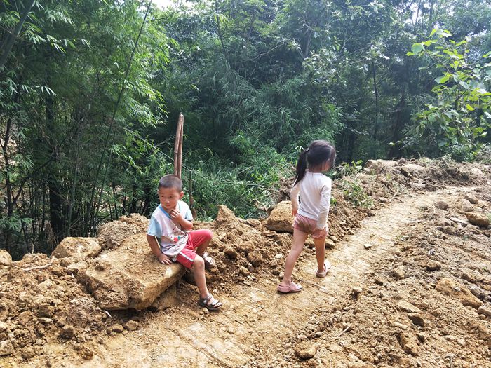 小学生上学之路。如果修通了路,小学生就可以骑车或者坐车上学了。