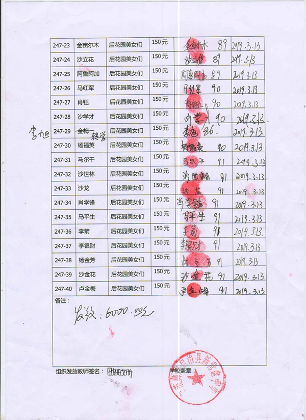 第247批新营盘中学(2019年3月到2019年8月)受助学生签收单