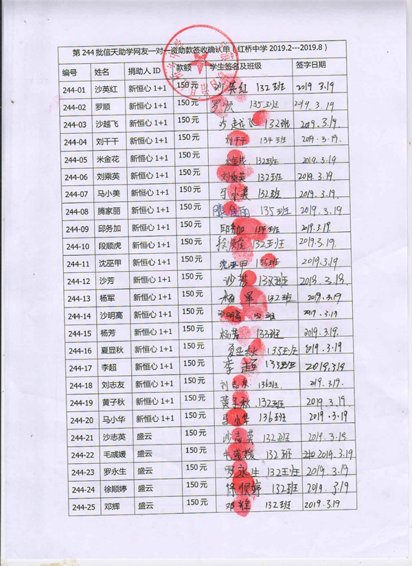 第244批红桥中学(2019年3月-2019年8月)受助学生签字确认单
