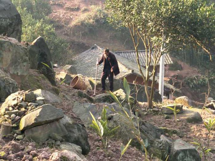 村民砍竹子。