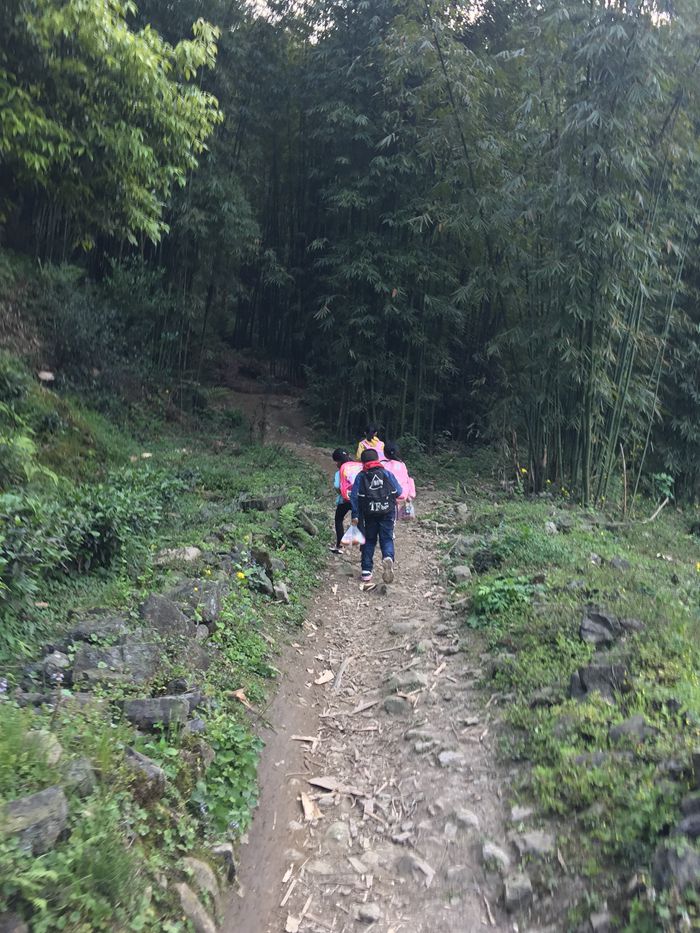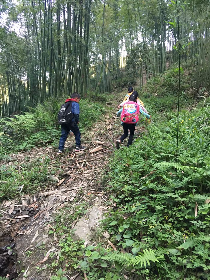 小学生上学之路,等修好了路之后,就可以坐拖拉机、面包车上学了,或者骑自行车上学了。