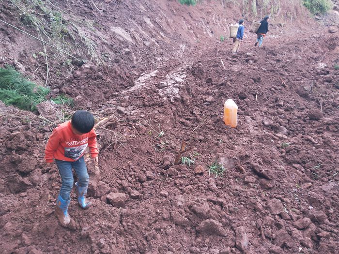 1.爱心人捐款、村民投工投劳一起修土路,干季能通车;