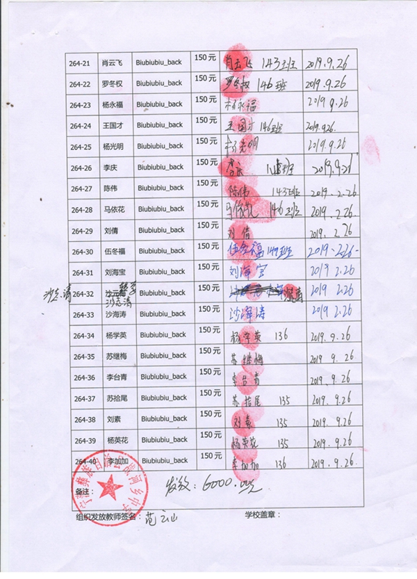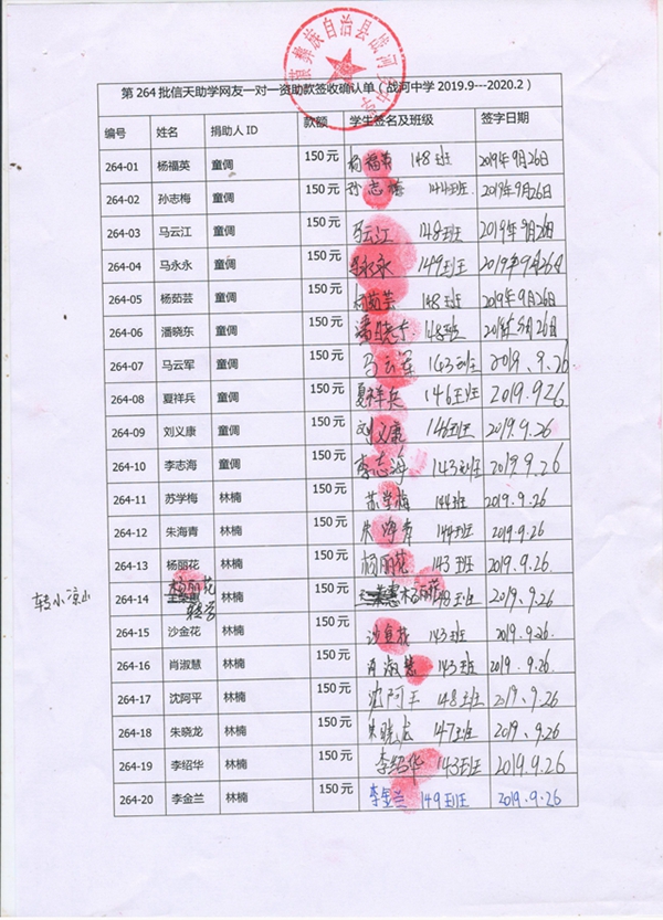 264-37苏拾尾,因中途转学,资助款转给杨梅;