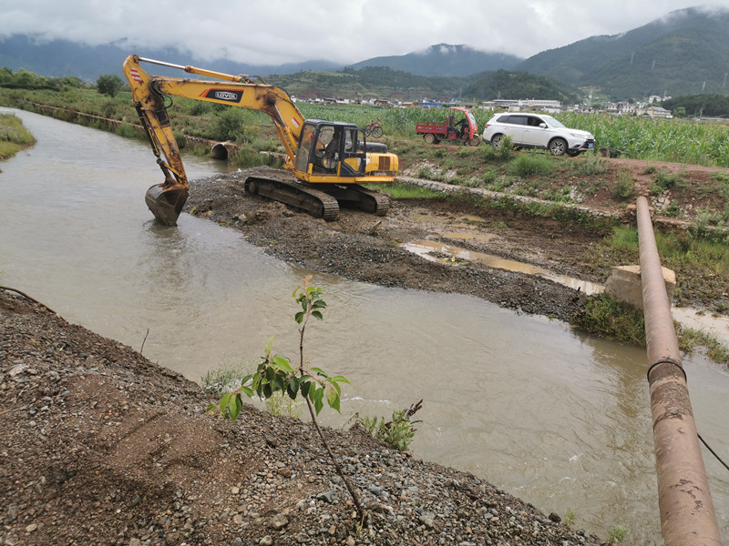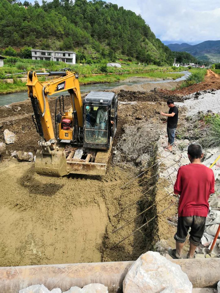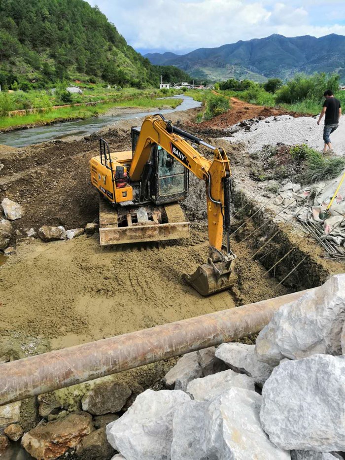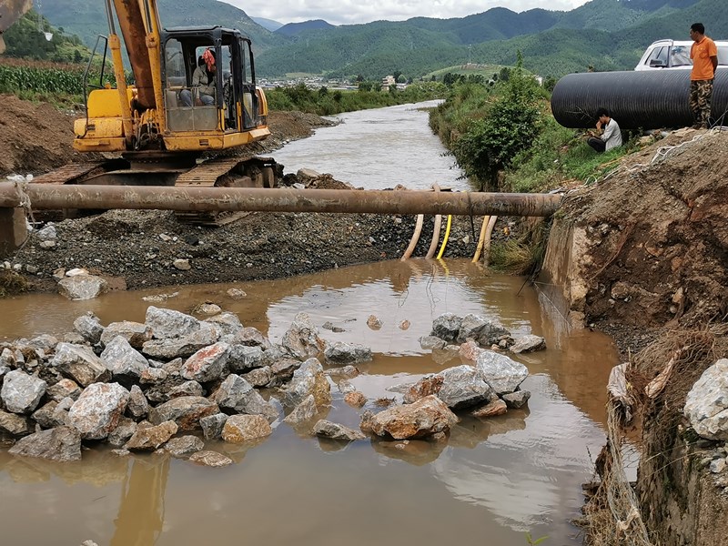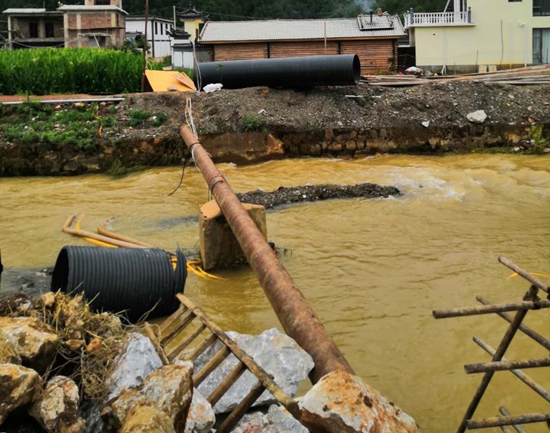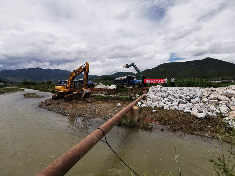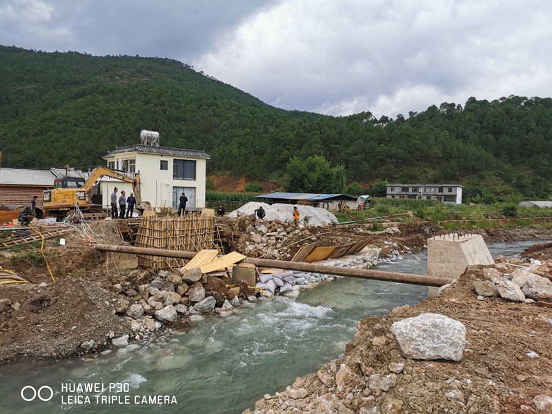 现在不是雨季,洪水还没有来,钢管下的河水有一半是枯的,正好适合修桥。过一段时间雨水多了,施工就很困难。