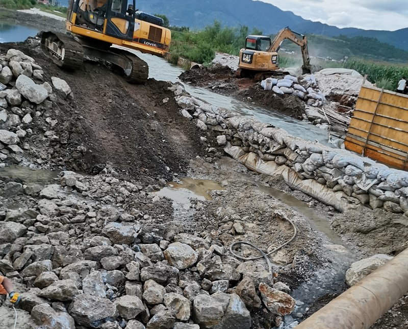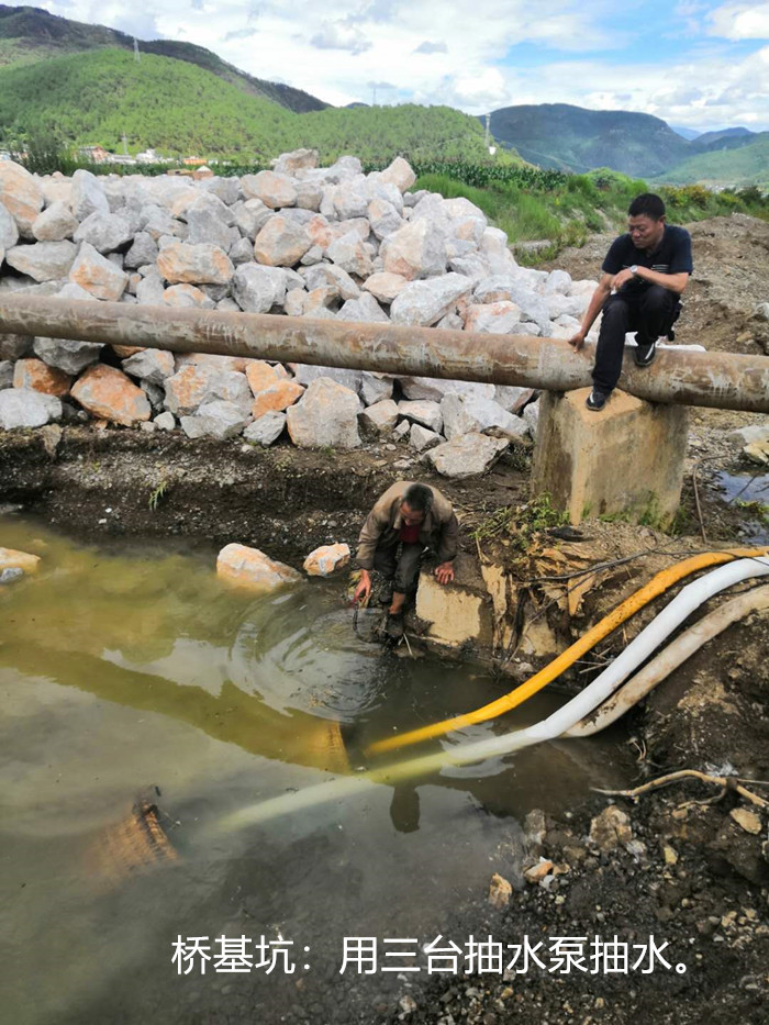 因为汛期也马上来了,7台抽水泵连续不断地抽水,地下水取之不尽,于是商量着今年放弃修建,等明年开春地下水位下降后再做第二、第三个桥基和桥墩。正当无望的时候,传来了好消息,已经封堵住了地下水涌处,抽干了水。可以做桥基了。