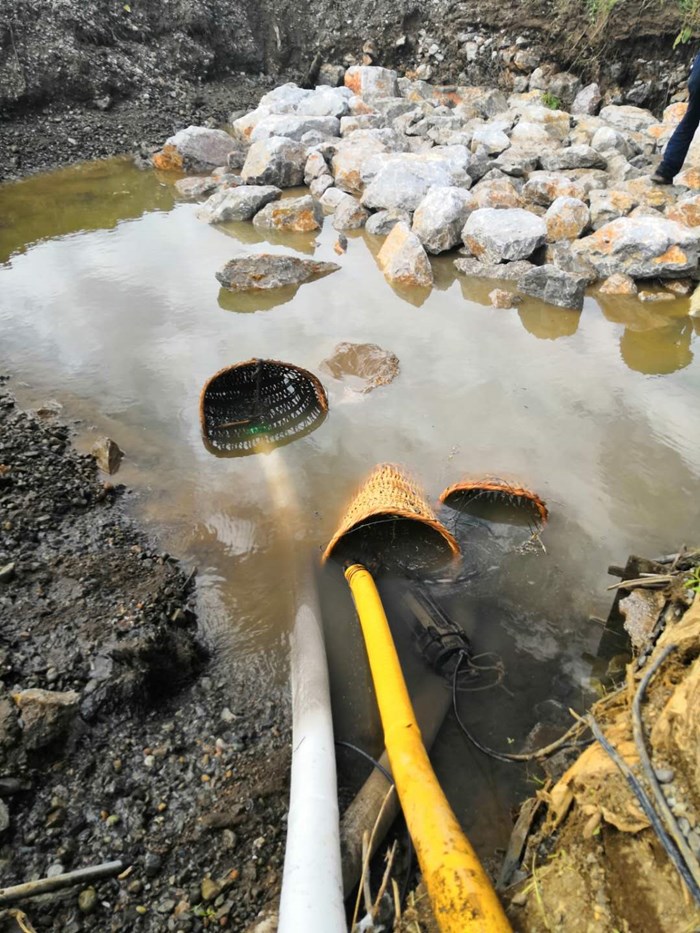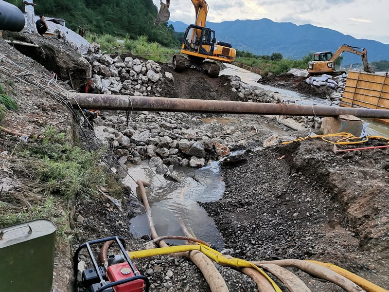 进入雨季,地下水水位高,7台抽水泵抽水,抽了十几天。