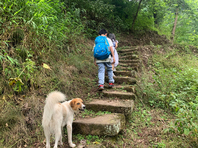 小学生上学之路,等修好了路之后,就可以坐三轮车、面包车上学了,或者骑自行车上学了。