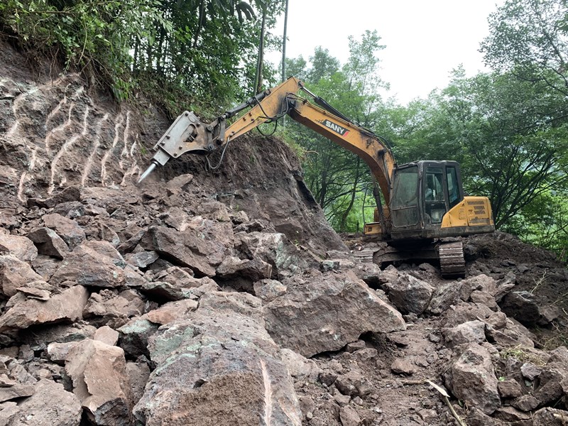 这条路施工难度很大,很多岩层,遇到岩石,钻头破碎。
