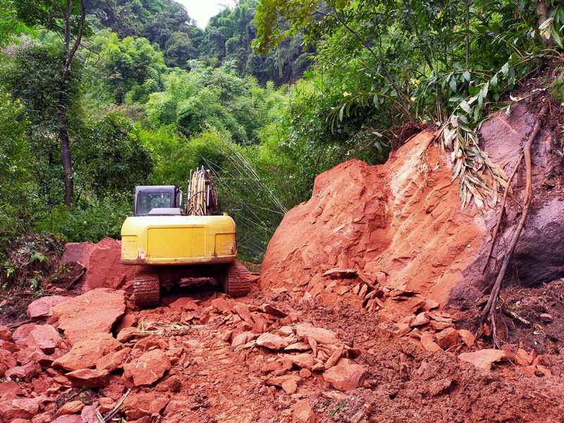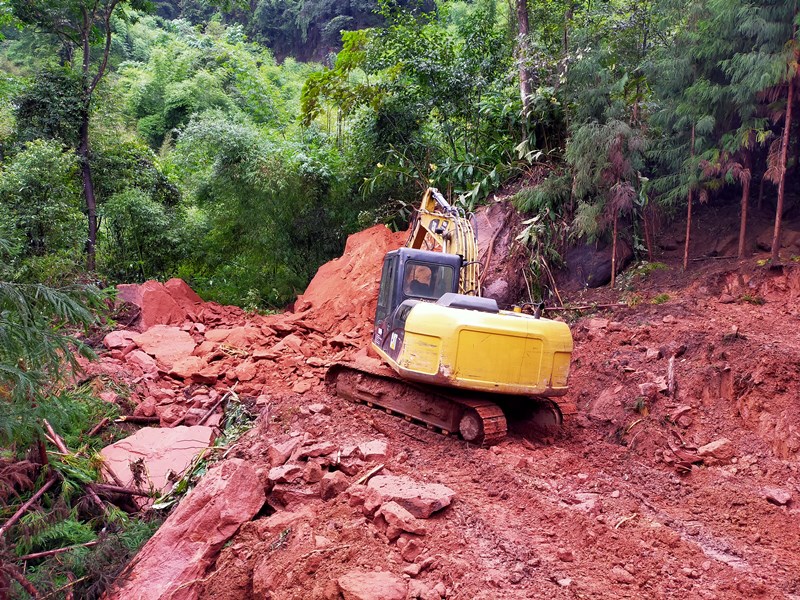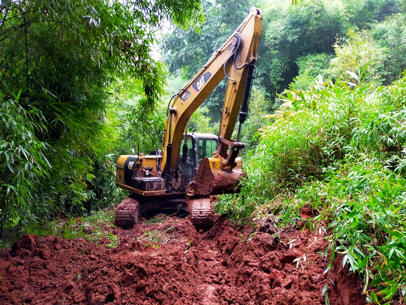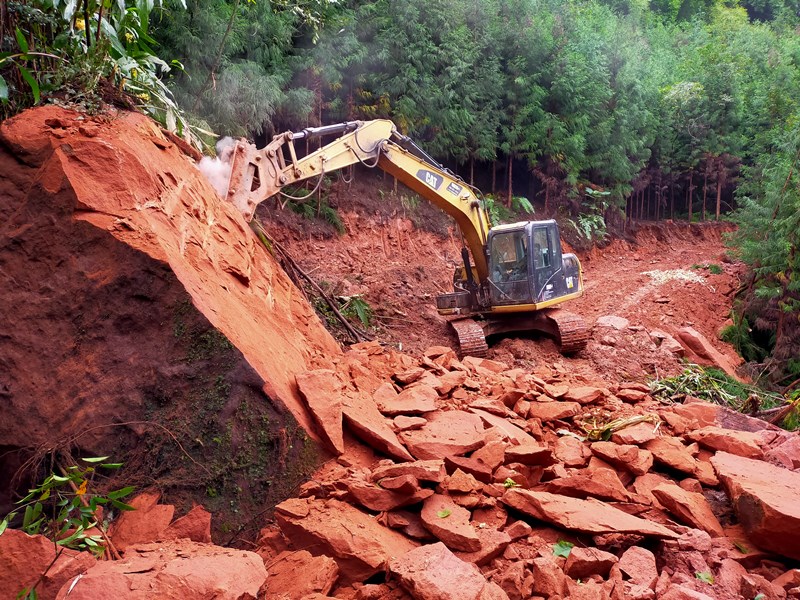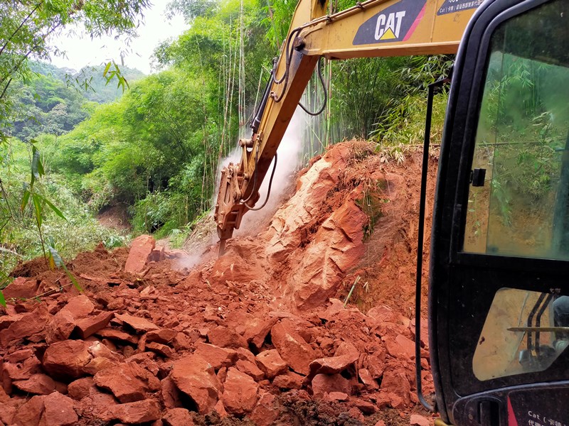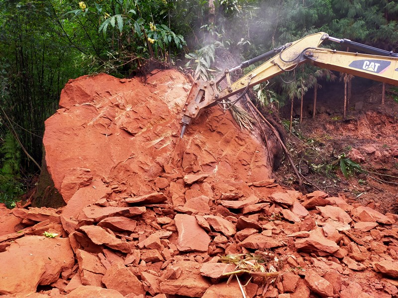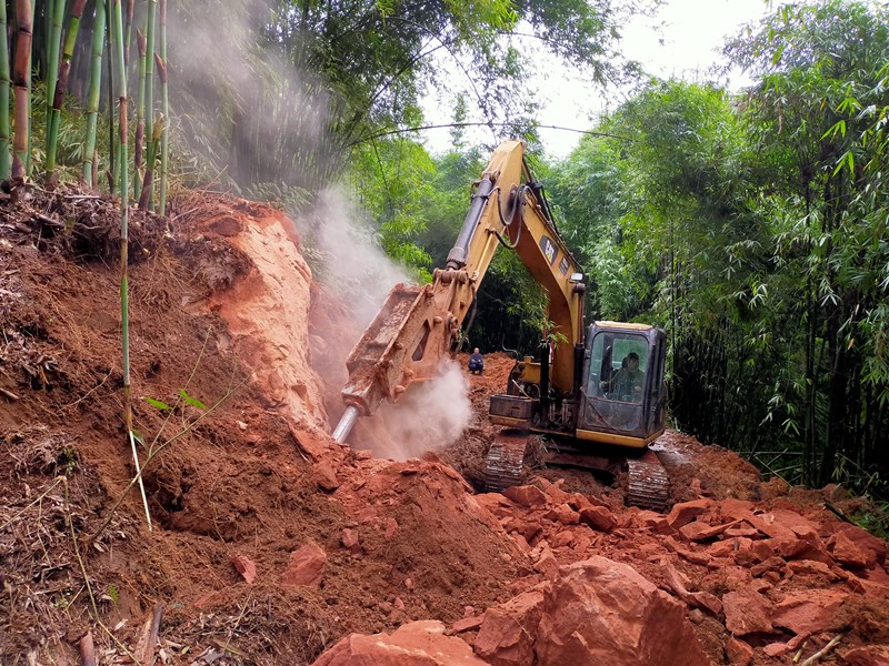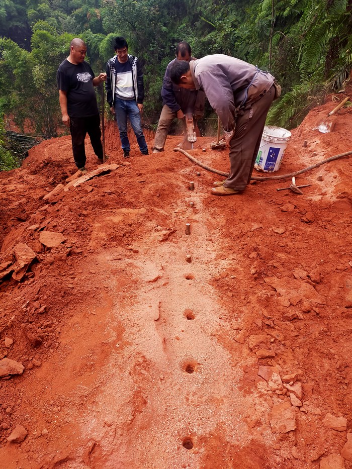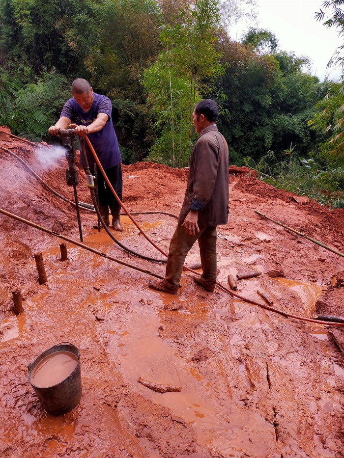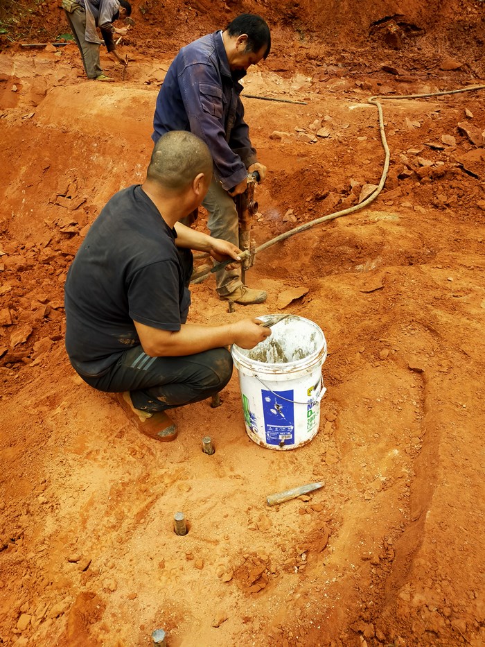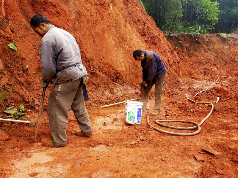 下面的地面,看着是黄土,其实是坚硬的大石头,一整块大石头,挖掘机钻头无法把石头打开。只好用村子里原始的打石头方法。