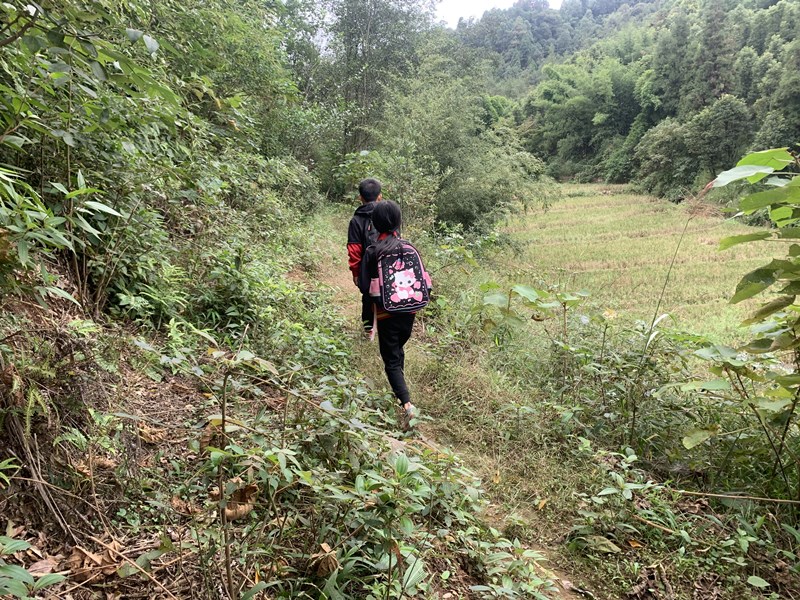 学生上学之路,等修好了路之后,就可以坐三轮车、面包车上学了,或者骑自行车上学了。