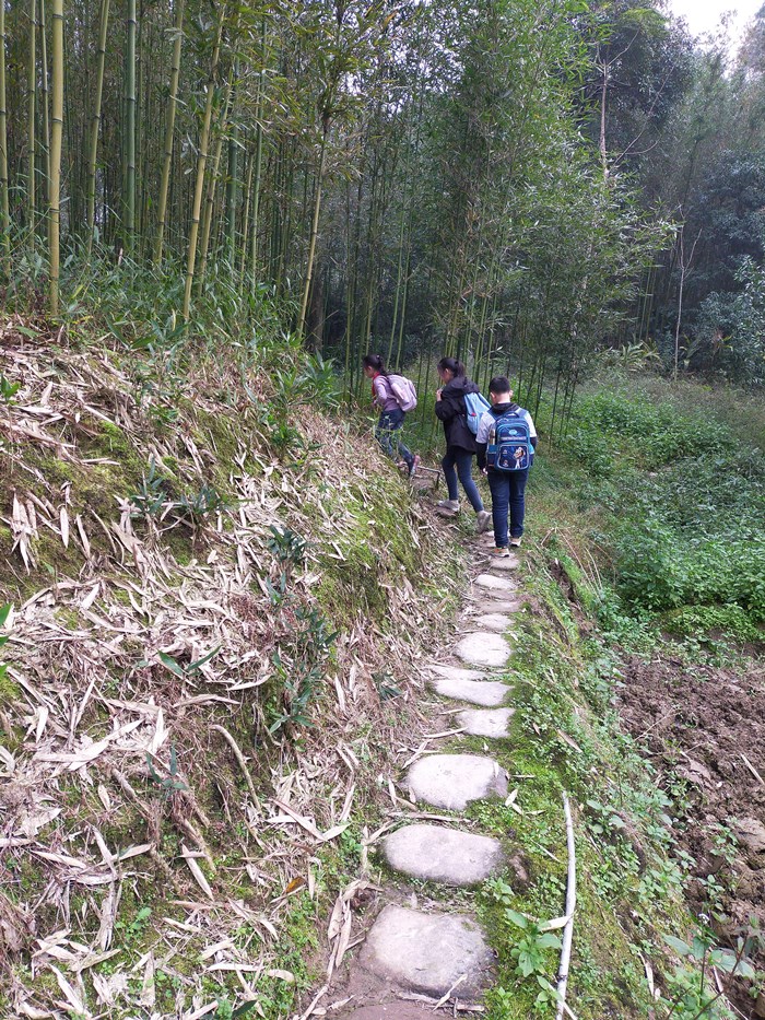 学生上学之路,等修好了路之后,就可以坐三轮车、面包车上学了,或者骑自行车上学了。