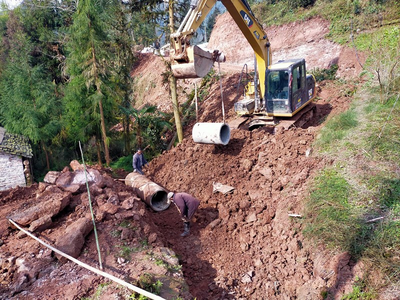 铺设涵管。
