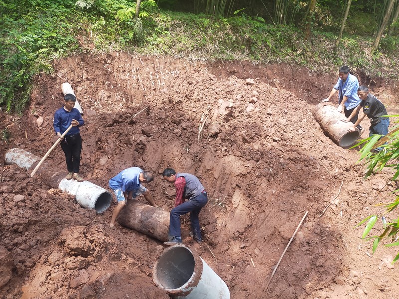 铺设涵管。