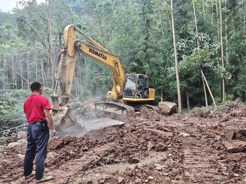 九龙滩公路开工后挖机出现故障,现场无法修理,因此更换了挖机进行施工。所以施工照片和开工照片中的挖机是两台不同的挖机。