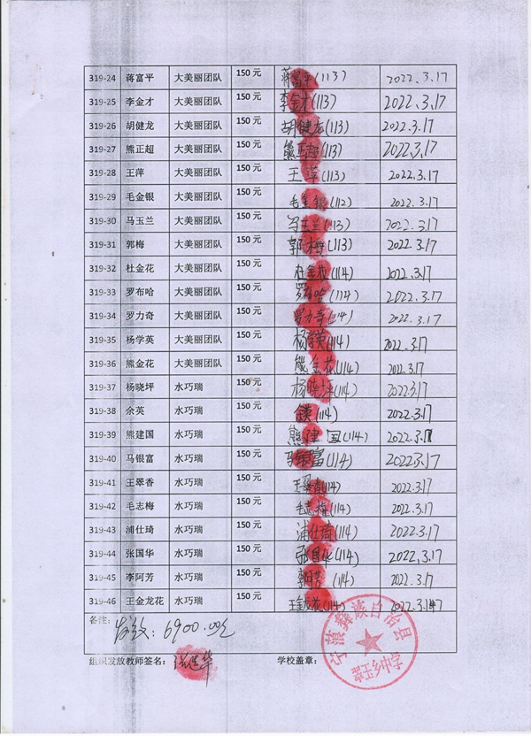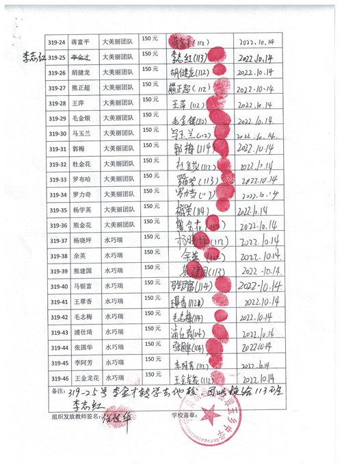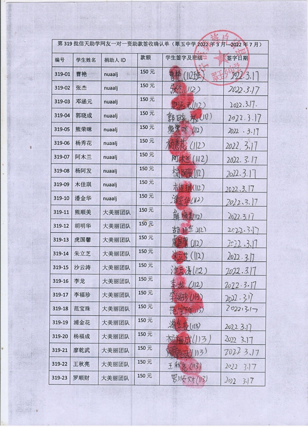 第319批翠玉中学(2022年3月-2022年7月)受助学生签字确认单