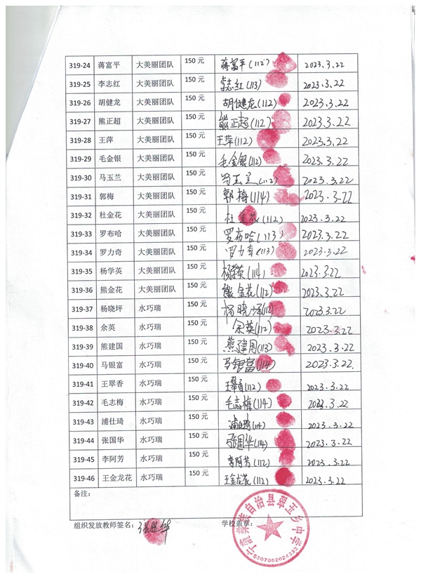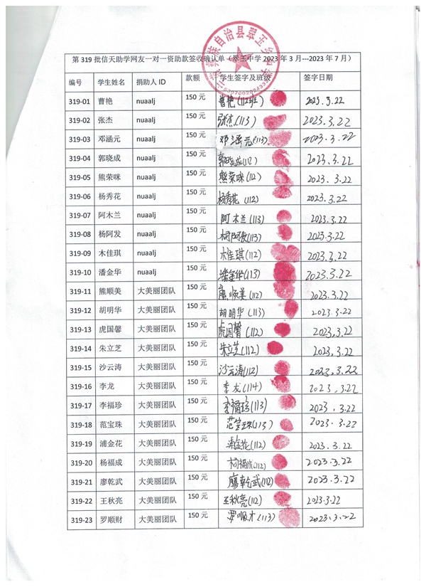 第319批翠玉中学(2023年3月-2023年7月)受助学生签字确认单