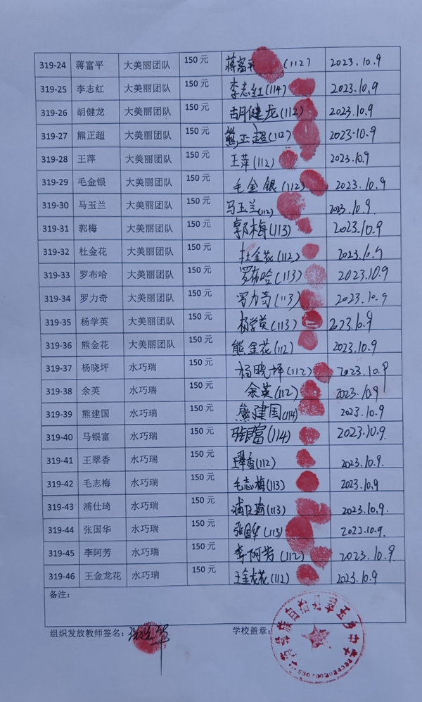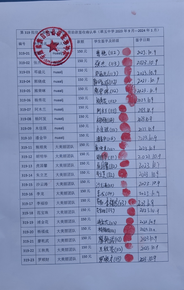 第319批翠玉中学(2023年9月-2024年2月)受助学生签字确认单