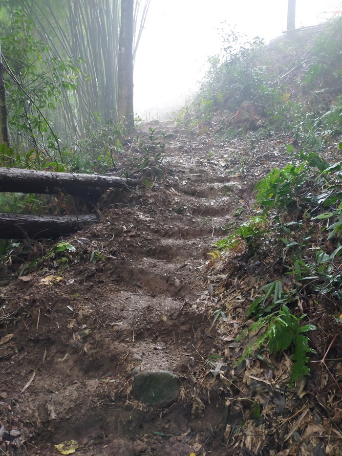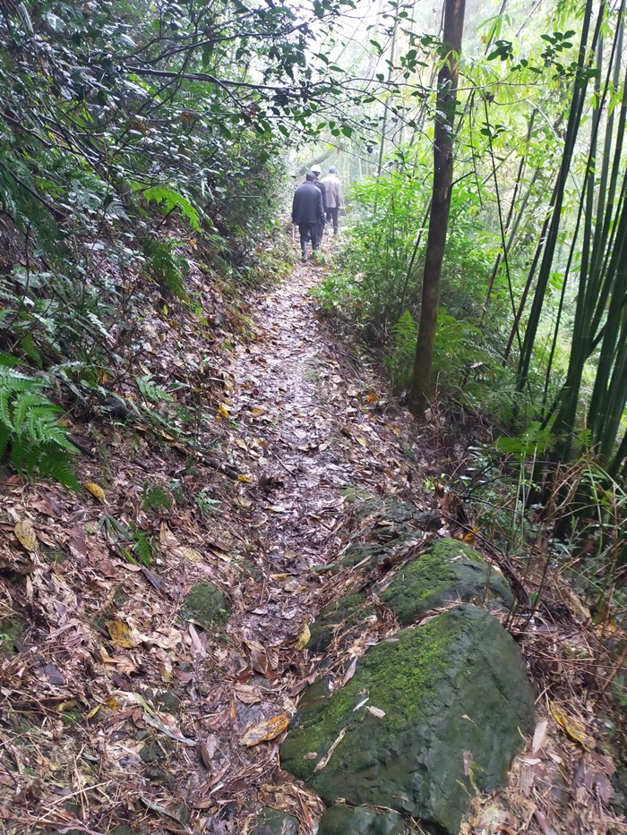 走访路线,这样的小道,计划修成能通卡车的土质公路,减轻村民的负担。