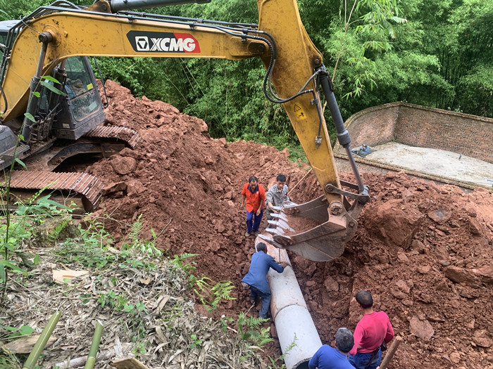 搬运涵管,安装涵管。