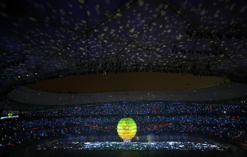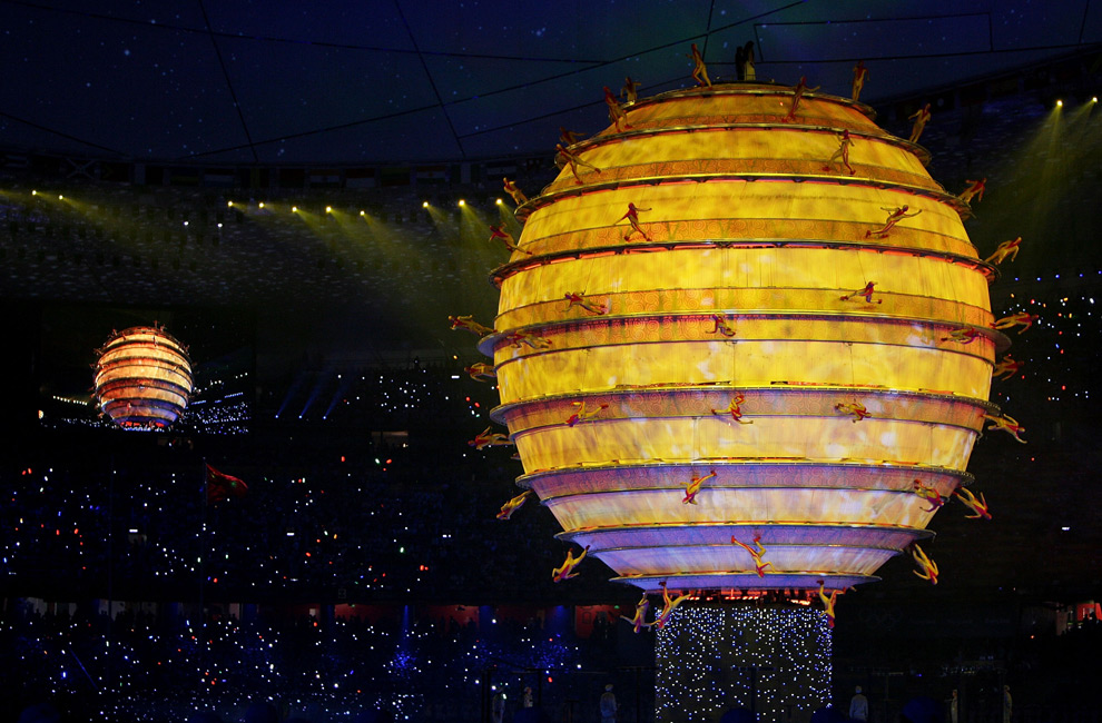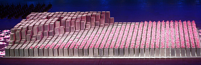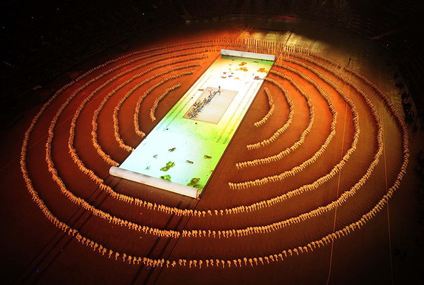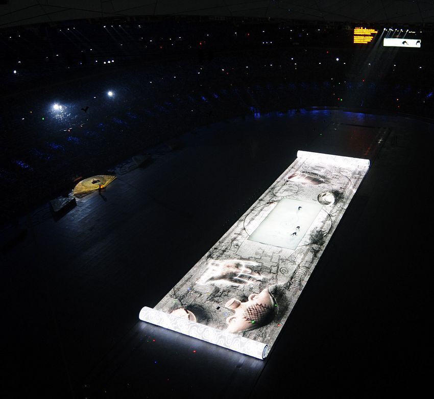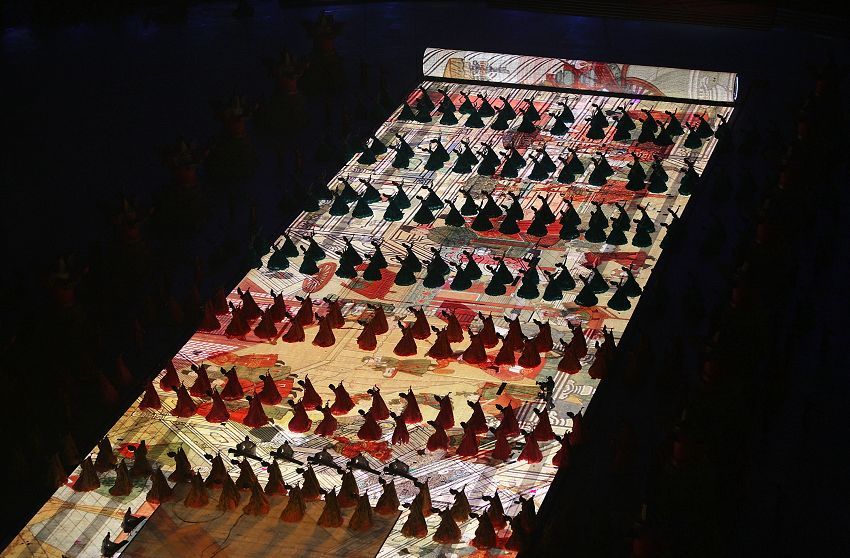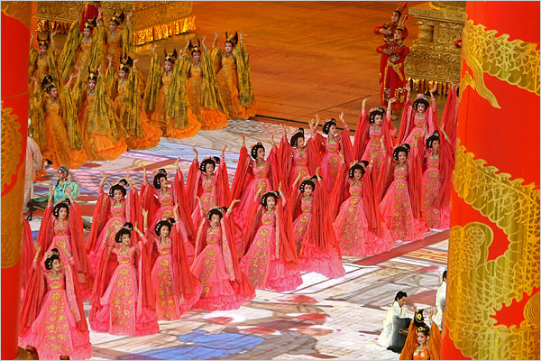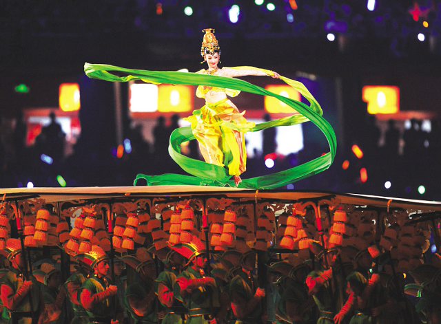 画卷刚展开时的文艺表演,用各种灯光取得的效果,可惜电视导播没有给远景镜头..当时看排演的时候就特震撼..