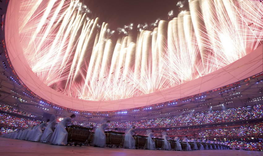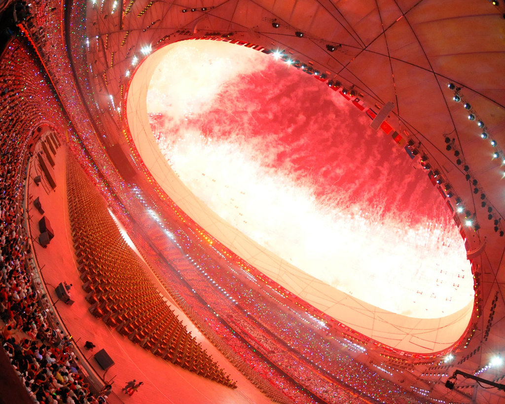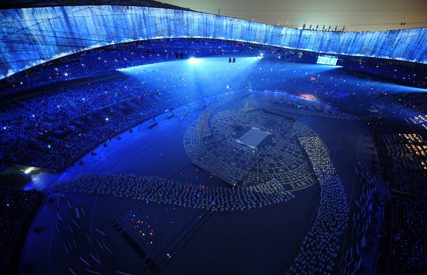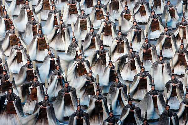 孔子3000名弟子: 7月份排演时有"隶书"(内容是三字经)通过光束打在地面上,开幕式上没看到..