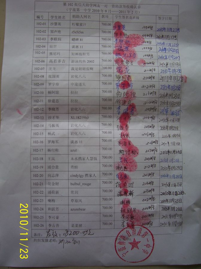 第102批受助学生名单(宁蒗一中高一26名,认捐ing,剩下3名)
