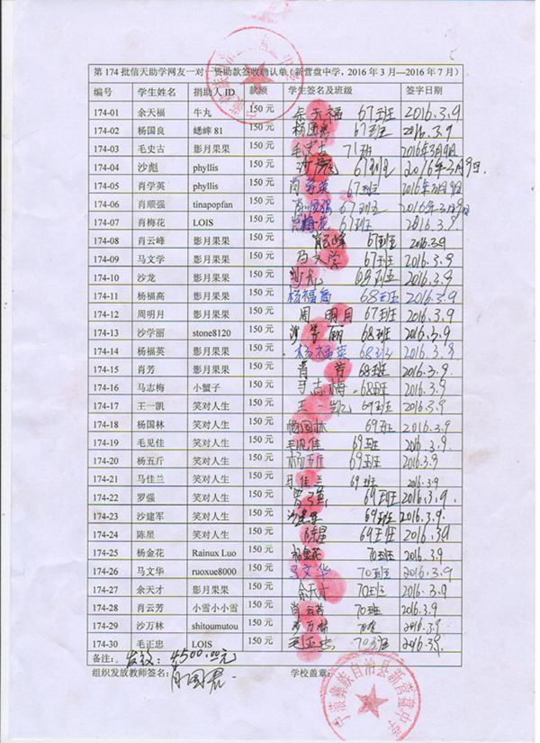 174-18余东 ,因中途辍学,资助款转给 杨国林;