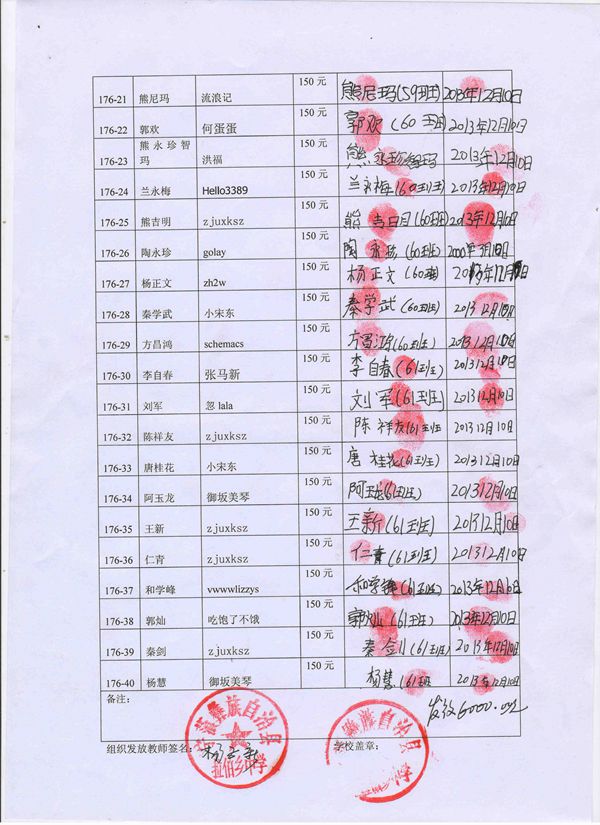 第176批拉佰中学(2013.09-2014.02)受助学生签字确认单
