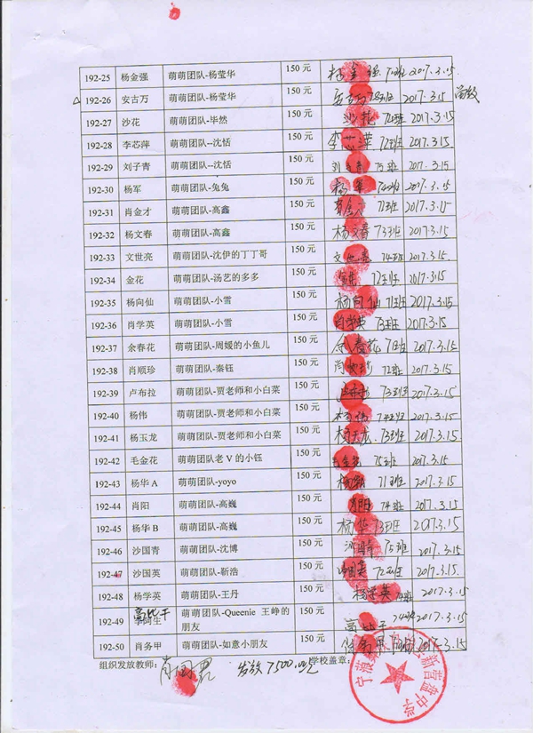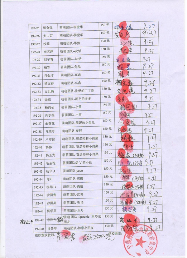 192-12王丽芳,因中途辍学,资助转给 杨勇;