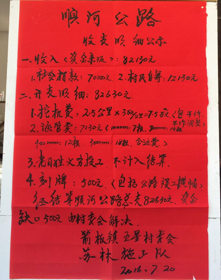 红榜公示,收支明细。
