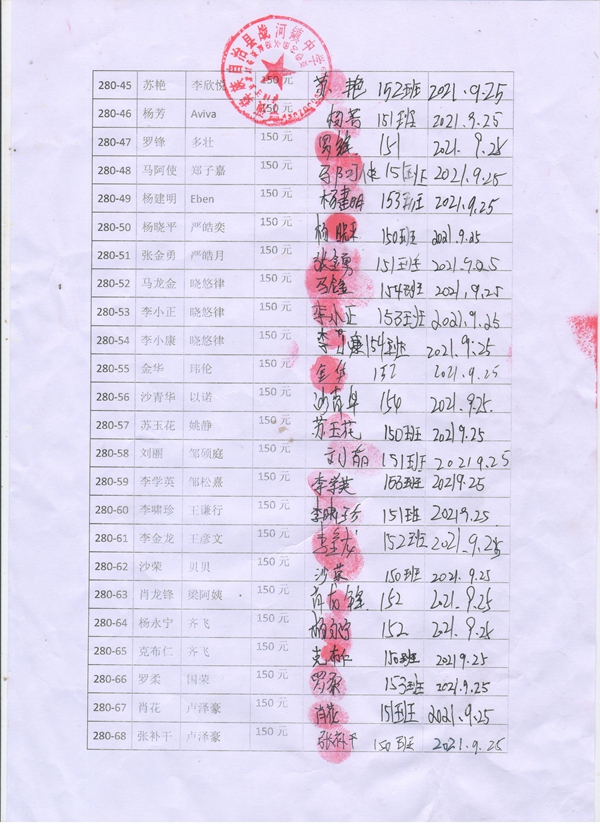 第280批战河中学(2021年3月-2021年8月)受助学生签字确认单