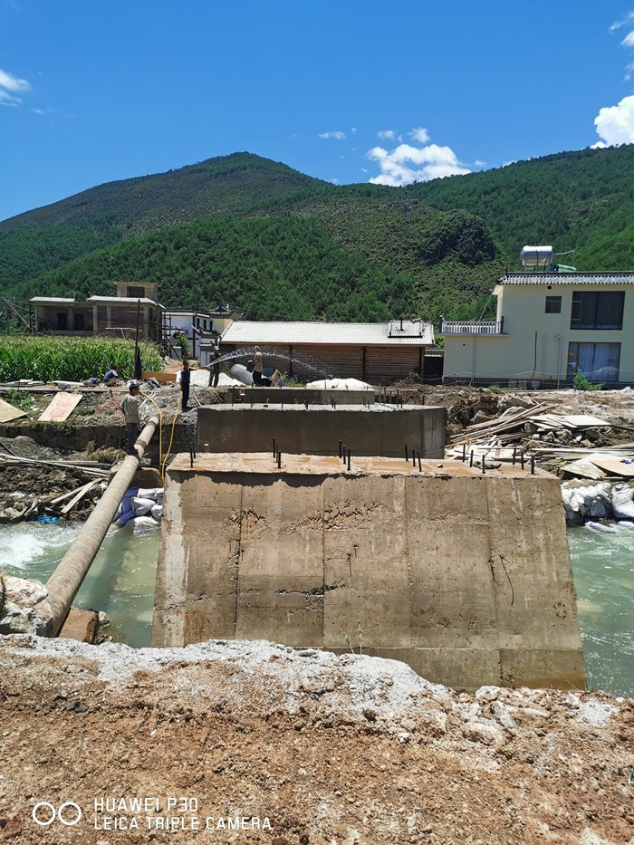 三个桥墩都已做好。第二个桥墩、第三个桥墩刚拆模。