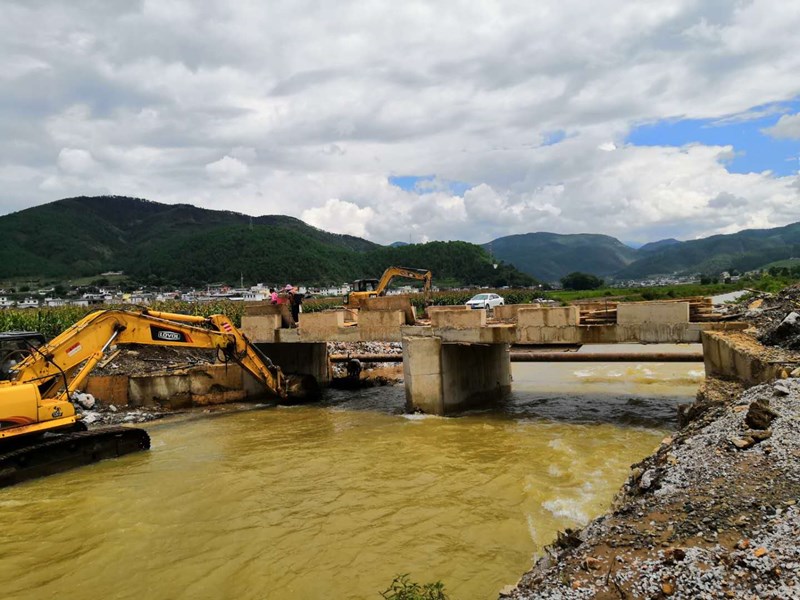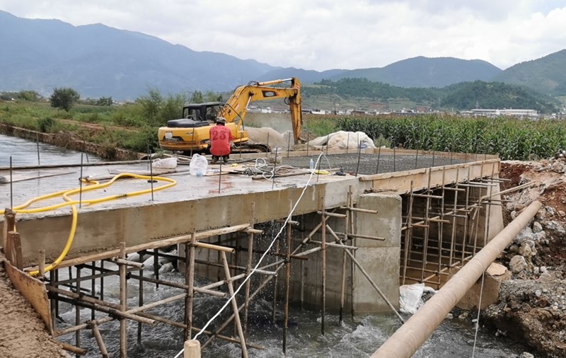 在流动的水里修桥,尤其是地下水位高,桥基坑里有地下水的地方修桥,很困难。