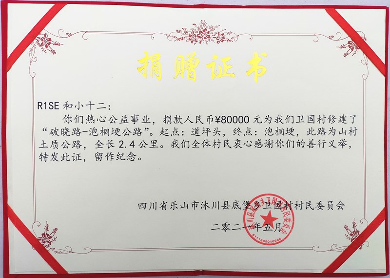 捐赠证书。