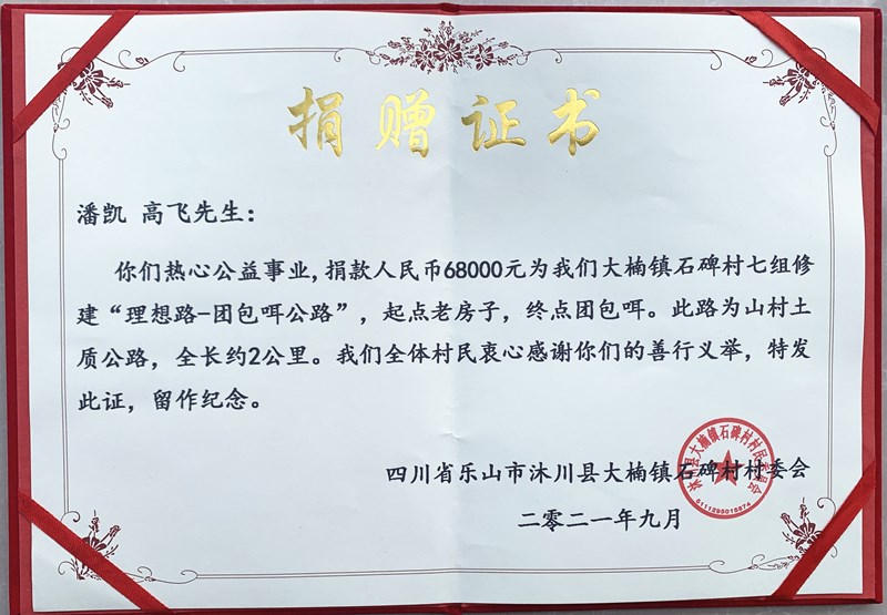 捐赠证书