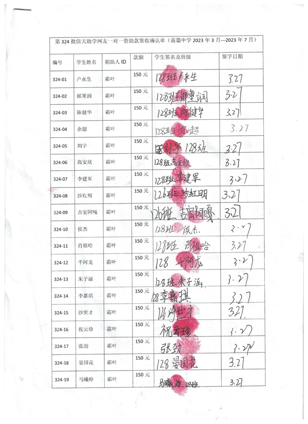 324-86张珂欣,因中途辍学,资助款转给杨冬梅。